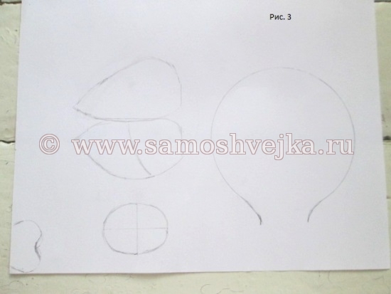 Мастер класс: как сделать на сумке аппликацию из ткани "Поросенок"При помощи лекала рисуем круг. Но не прорисовываем его до конца. С одного из боков продолжаем линии круга двумя слегка вытянутыми линиями.