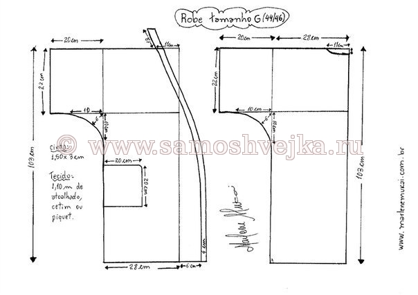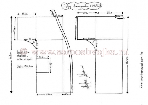 | На просторах интернета попался шикарный домашний халат и выкройки к нему: