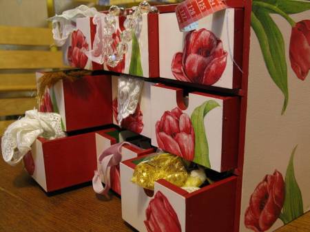 | Светлана, даже не сомневайтесь, смело беритесь за работу. Декупаж - настолько благодатная техника. Если проявить хоть немного терпения и аккуратности, работу практически невозможно испортить. Есть для Вас пара советов, как для новичка в этом деле. Во-первых, сделайте фон светлым. Это обязательно на первых порах, потому что с темным фоном нужно уже применять различные уловки. Оля правильно Вам посоветовала сразу загрунтовать коробочку белой краской, а потом сделать фон, соответствующий фону салфетки. Во-вторых, выберите салфетку с небольшими рисунками, чтобы их было легче наклеивать. Кисточку для клея возьмите плоскую из щетины или лучше синтетическую, а для лака - "Пони". Поверьте, эта работа не займет у Вас много времени. А после того, как Вы сделаете свое первое изделие в этой технике, Вы просто не сможете остановиться !