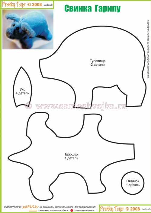 | Нашла несколько выкроек различных свинок, которые можно сшить из ткани или фетра: