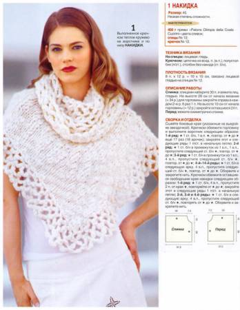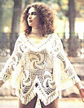 | А вот модель пончо из квадратов. Схемы вязания квадрата нет, есть только схема сборки.