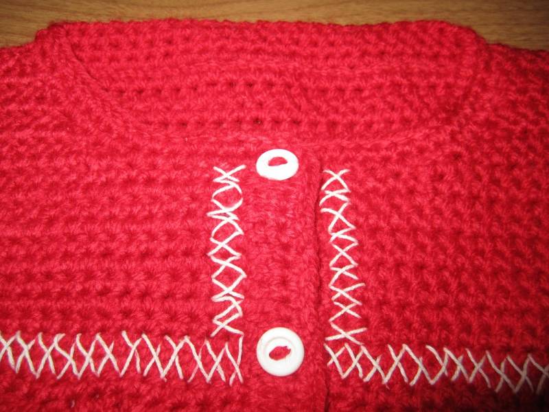 | Оля, очень красивые одежки получились для Юли! Только по схеме я так и не поняла как вязать необычную кайму. Надо вязать столбик с накидом, а потом в него еще четыре столбика с накидом? В одном ряду?
