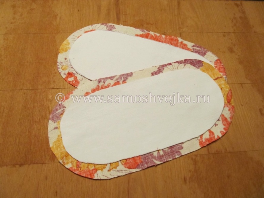 Для ручек подготовленные два прямоугольника 19 см х 4, 5 см необходимо будет загладить к центру.